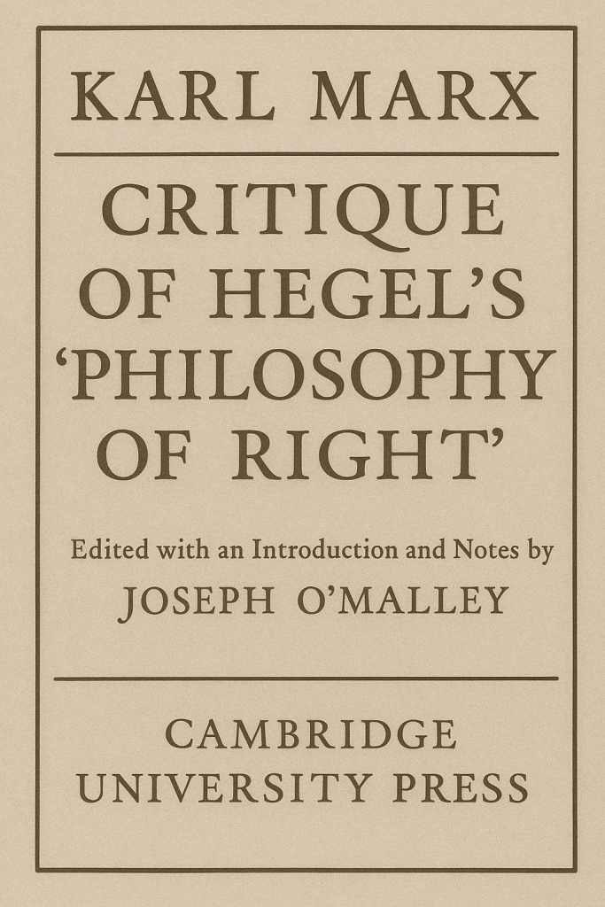 Karl Marx’s Critique of Hegel’s ‘Philosophy of Right’ is a pivotal work in his early intellectual evolution, capturing both his engagement with and his divergence from the German idealist tradition embodied by Hegel. This work, representing Marx’s first extensive confrontation with Hegel’s political philosophy, marks the beginnings of his endeavor to unravel the delicate bonds between political structures and economic forces. Focusing on Hegel’s delineation of the state’s constitution in paragraphs 261–313 of the Philosophy of Right, Marx carefully dissects Hegel’s conceptual framework. Through detailed, paragraph-by-paragraph commentary, Marx subjects Hegel’s arguments on the nature and organization of political authority to a rigorous critique, ultimately challenging the philosophical foundations upon which Hegel builds his vision of the state.